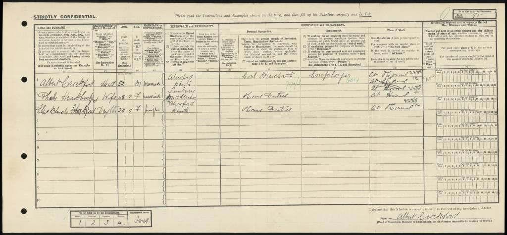 Albert and his family are also recorded at The Dene. He was 52 years old and a coal merchant. His wife Phoebe was 48 and their daughter Elsie was 25. Both women were recorded as being at home.
