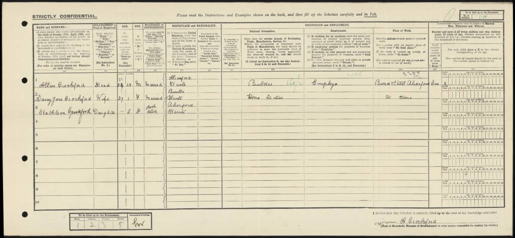 Allan and Daisy were living on East Street in Alresford with their five month old daughter Kathleen. Allan was 33 years old and working as a builder. Daisy was 37.