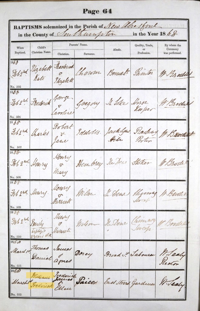 Cecilia and William had a third son in 1876. He was named William and was born in Alresford.