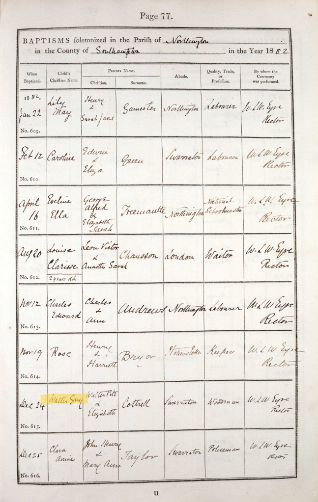 Walter was baptised at the local church where he later married on 21 February.