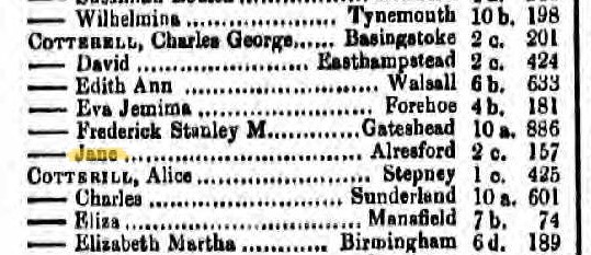 Walter and Elizabeth’s second child, a daughter named Jane, was born in 1880. Her birth was registered in the third quarter. It seems she may not have been baptised, or at least not at the local church, as I have checked page by page and her name is not listed.