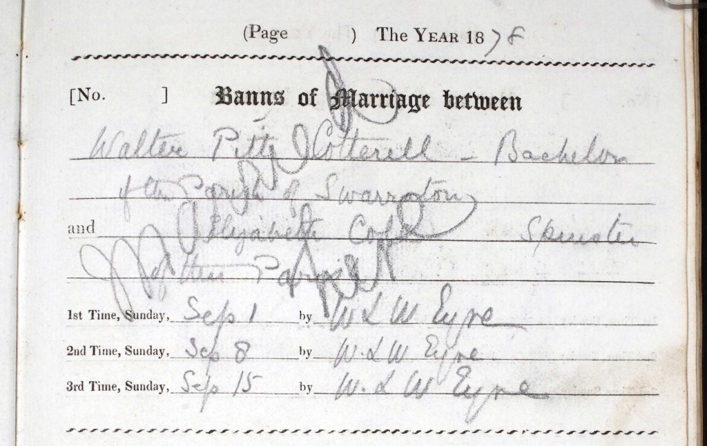 Below is a copy of their marriage banns.