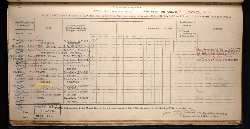 Alfred was awarded the Victory Medal and the British War Medal for his service.