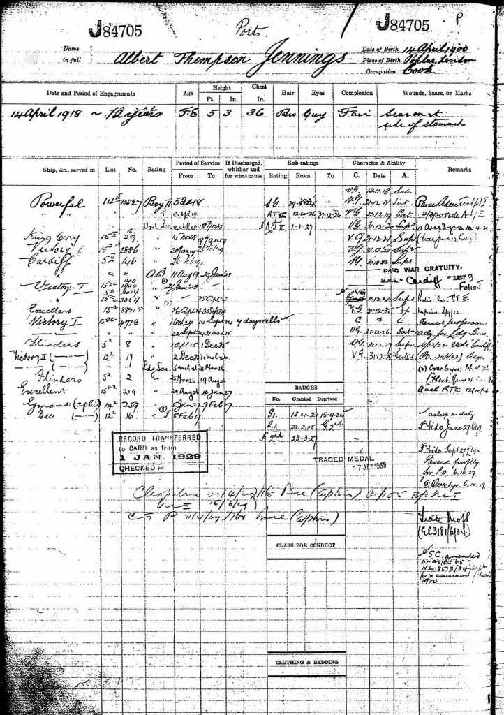 Lizzie’s son John, aged only 15 years at the time, enlisted in the Navy in 1925. The record lists HMS Impregnable which I believe was a Navy training ship.